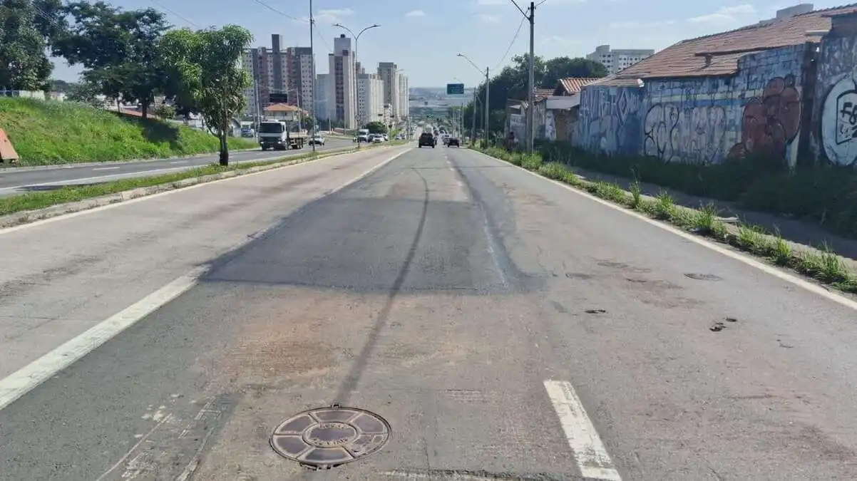 Na avenida John Boyd Dunlop, os trabalhadores fizeram uma manutenção em um afundamento na pista no sentido centro/bairro, na altura do Jardim Londres.