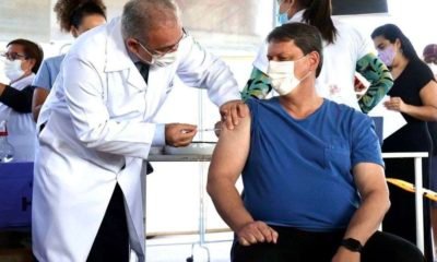 O ministro da Infraestrutura, Tarcísio Gomes de Freitas, recebeu, hoje (5), a primeira dose da vacina contra a covid-19. Freitas, que completou 46 anos de idade em junho,...