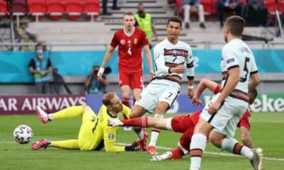 O artilheiro de Portugal, Cristiano Ronaldo, comemorou seu recorde de primeiro jogador a disputar cinco edições da Eurocopa com dois gols em uma vitória portuguesa sobre...