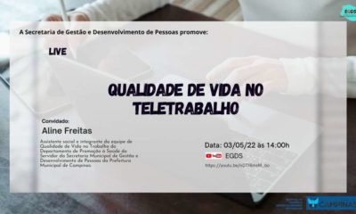 Encerrando a primeira etapa de debates sobre o teletrabalho no serviço público, acontece nesta terça-feira, 3 de maio, a live “Qualidade de vida no teletrabalho”. A transmissão será...