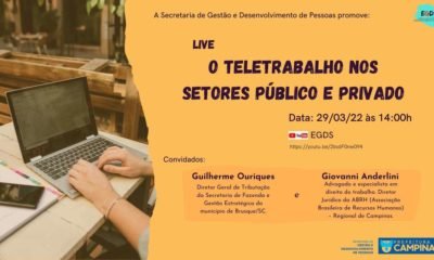 Será realizada nesta terça-feira, 29 de março, a segunda live do ciclo de debates sobre teletrabalho, promovido pela Secretaria de Gestão e Desenvolvimento de Pessoas, por meio da Escola de...