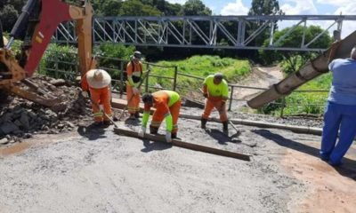 Uma equipe da Secretaria Municipal de Serviços Públicos está, desde segunda-feira, 8 de fevereiro, fazendo reparos na cabeceira da ponte, de 9 metros de extensão, que...