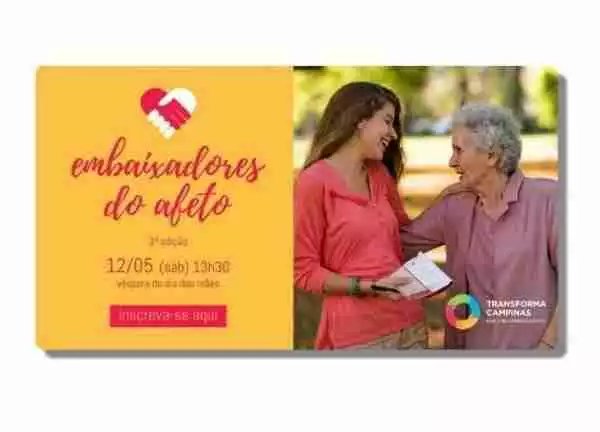 O Movimento Transforma Campinas realiza, na véspera do Dia das Mães, sábado, 12 de maio, a 3ª Edição dos “Embaixadores do Afeto”, em que voluntários irão...