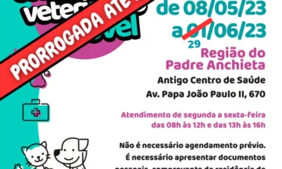 A Unidade 1 do Consultório Veterinário Móvel instalado na Vila Padre Anchieta, que seria desativada nesta quarta-feira, 31 de maio, irá prorrogar por um mês a...