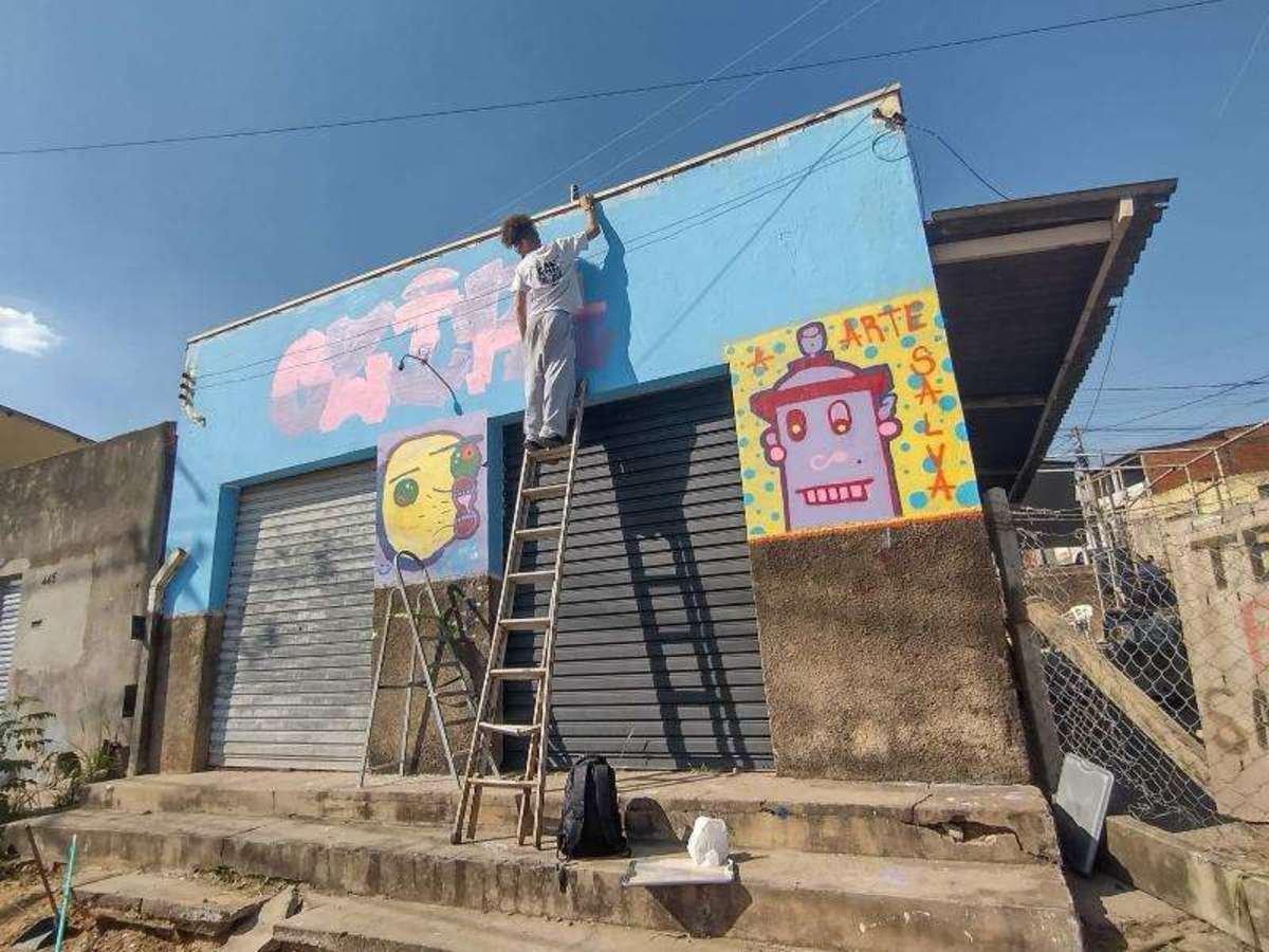 Coletivo social faz grafitagem para celebrar Dia Mundial da Criatividade