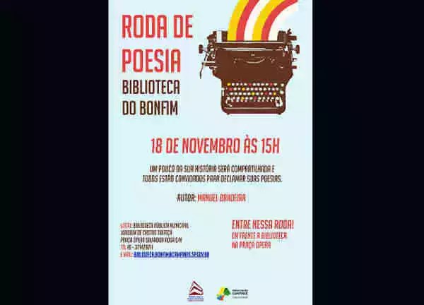 A Biblioteca Pública Joaquim de Castro Tibiriçá, no Bonfim, promove mais uma Roda de Poesia, no sábado, 18, às 15h. Nesta edição, os versos do...
